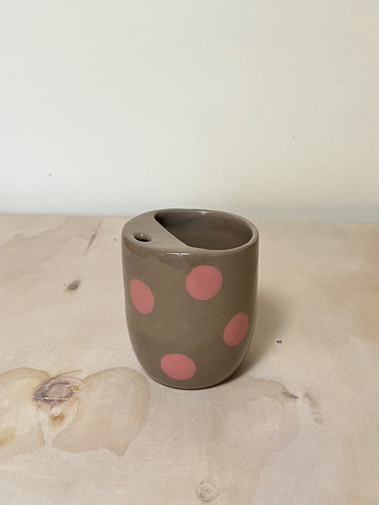Brown polka dots To-Go Cup. Butter yellow cup.